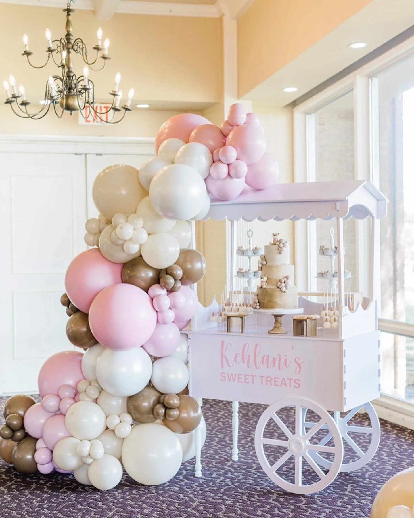 Elevate your event with our beautifully crafted dessert cart setup, making your celebration both delightful and memorable.